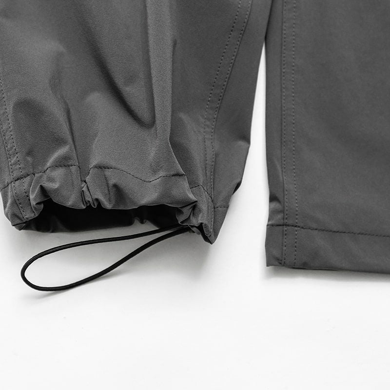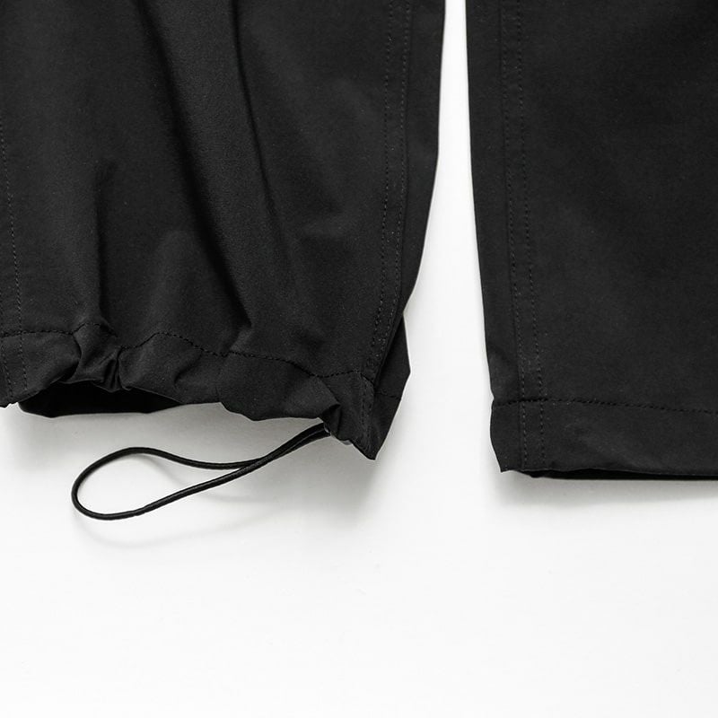 ウエストはウェビングベルト、裾にはストリングを採用しているためお好みのスタイルに合わせて調整が容易に行えます。