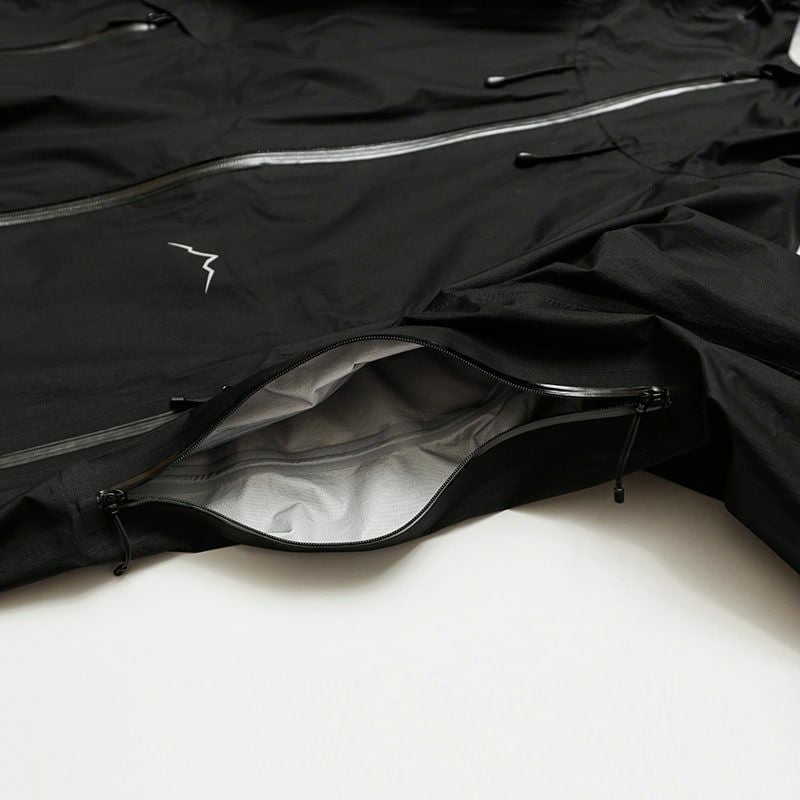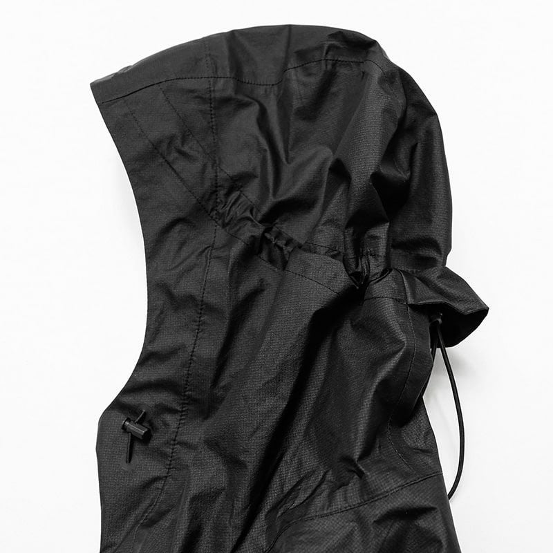 Nylon 100% (DWR C6)、58g/SQM、3L Pertex Shield Air Nano Film、YKK zippers、Nifco