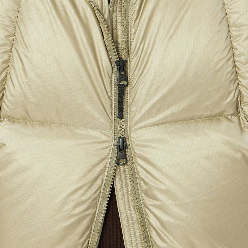 ダウンのバッフル構造は、ダウンが背中の中心部分に集まる形状になっているため、体幹を効率的に保温。首まわりにもダウンチューブを配し、コールドスポットを少なくしています。