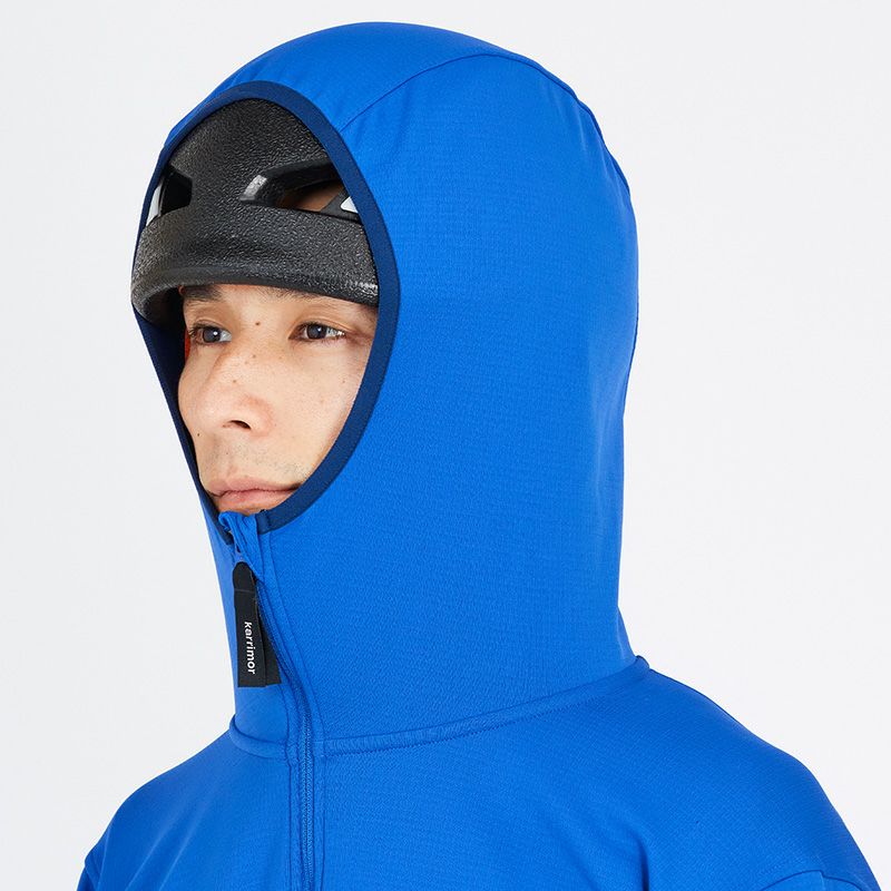 フィット性の高いフードやポケット位置を高めに配置しするなど、山行のみならず様々なアクティブシーンで活躍する一着。