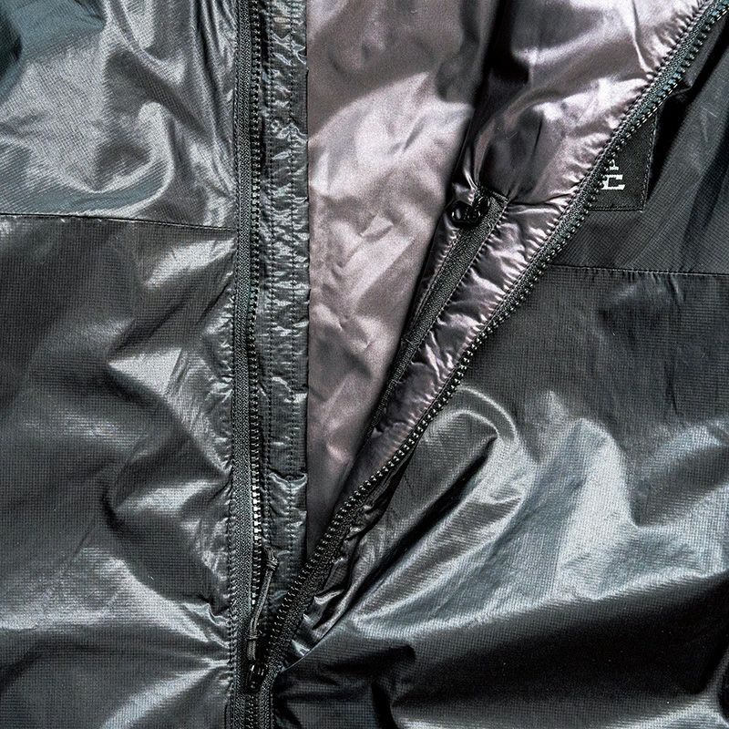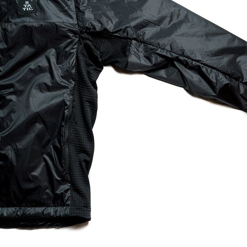 STATICで長年使ってきた、AIR FLAKE®。ダウンを分析して作られた化繊ダウンで850FPという「かさ高性」が特徴で、もちろん化繊なので湿気に強く化繊ならではの安心感があります。もちろんリサイクルポリエステル100%素材です。