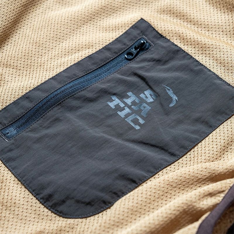 メッシュ地のため軽量・高通気、それでいて高い保温力を持ち、行動中に着用したままでも蒸れにくく、着脱の回数が減ります。