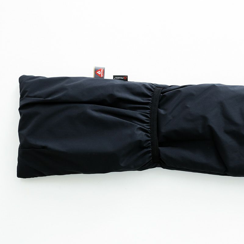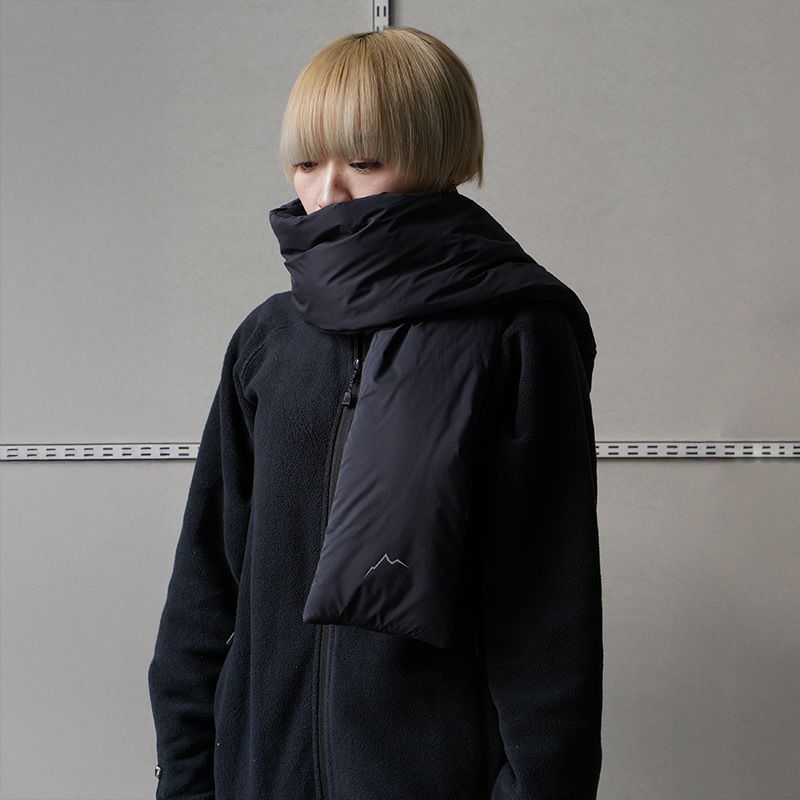 マフラーの先端はオープンポケットになっており、もう一方の先端を入れ込んで固定できるようになっています。また使わない時は、オープンポケット部分にパッカブルに収納できます。