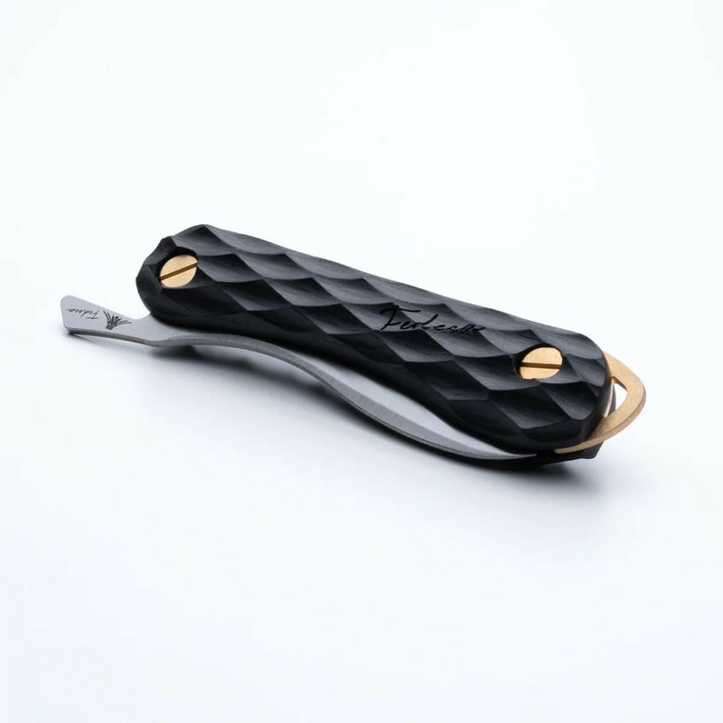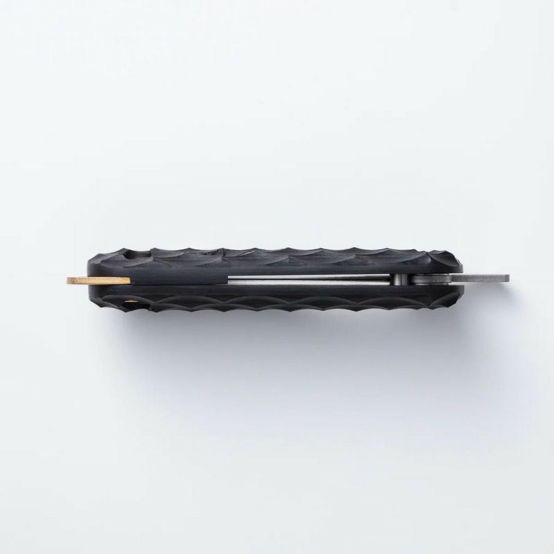 「折り畳める包丁」をコンセプトとした、折畳式料理ナイフの形状をそのままに、より携帯性を重視しつつ包丁の操作性を両立する、切りやすくてコンパクトなナイフです。