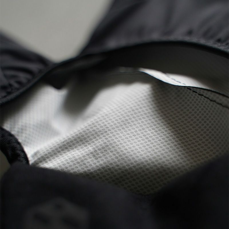 手の甲には軽量ナイロン製の収納式フードを内蔵。