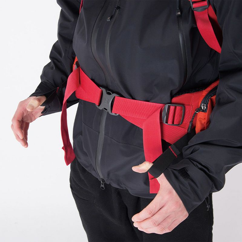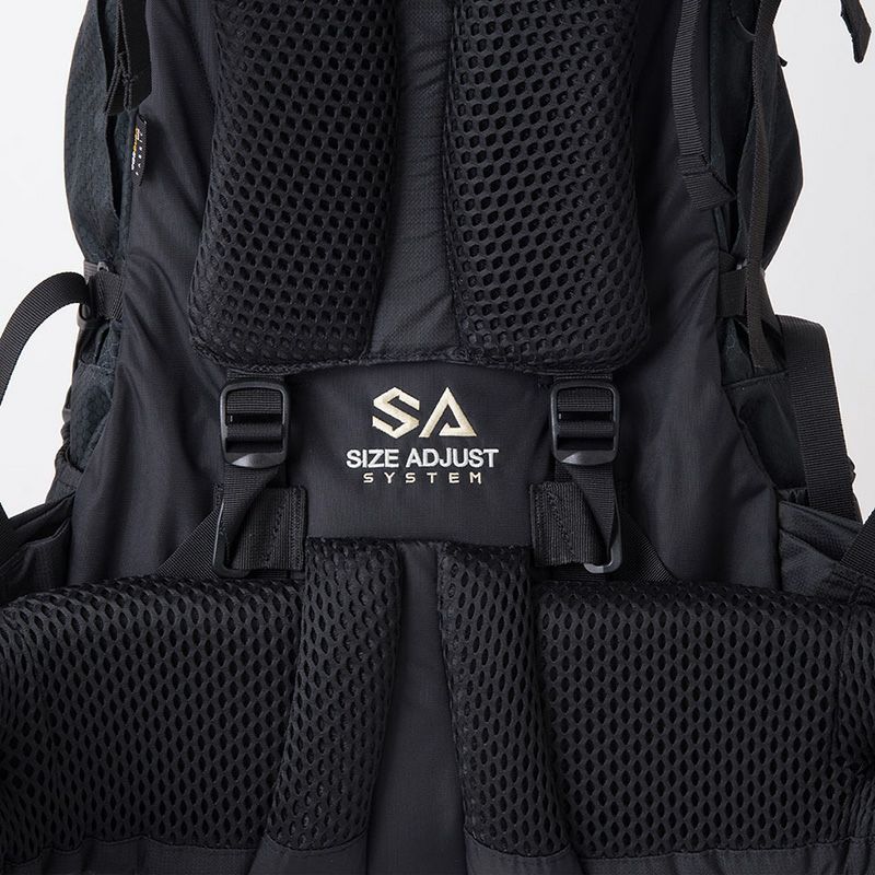 豊富なポケットを備え、無段階で背面調整できるSA(サイズアジャスト)システムを搭載し、素早いフィッティングと安定感のある背負い心地を実現。耐久性に優れたCORDURAファブリックを使用。