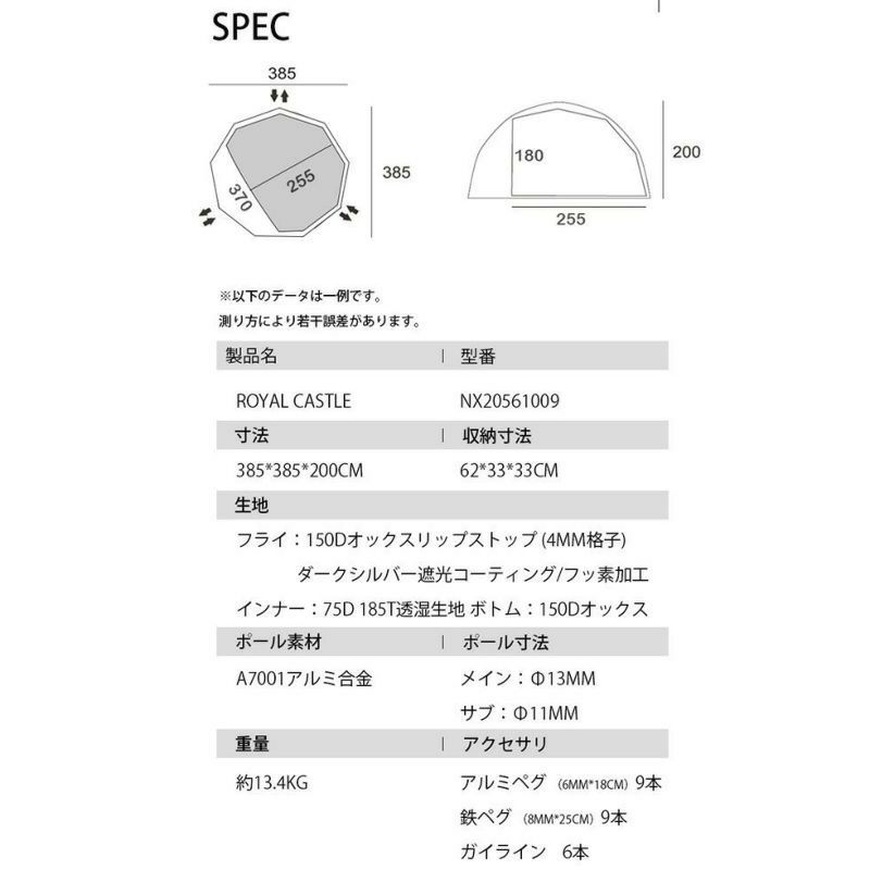 展開時:全幅385 全長385 全高200cm