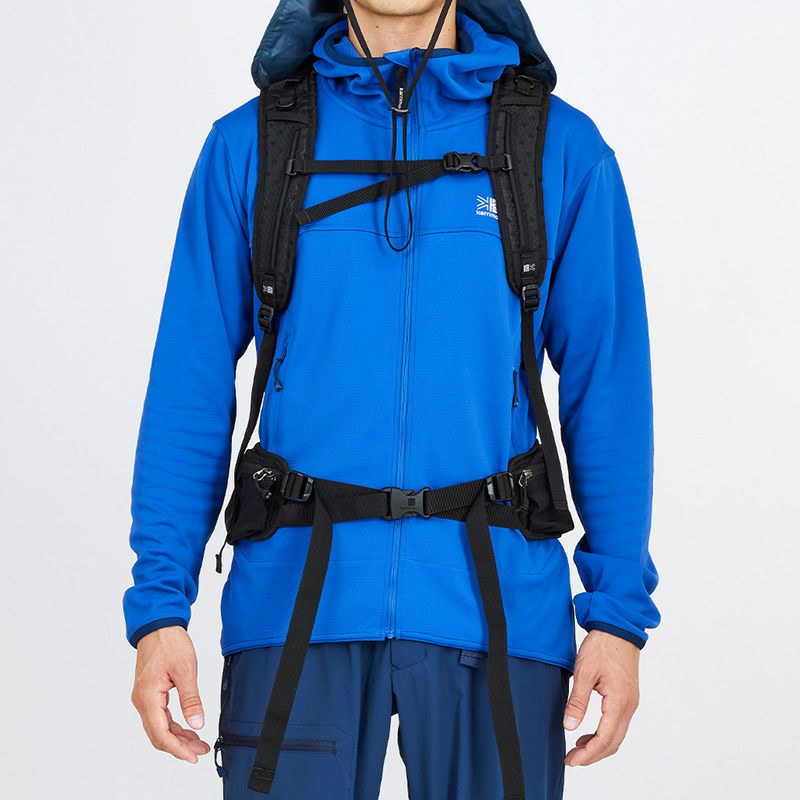 フィット性の高いフードやポケット位置を高めに配置しするなど、山行のみならず様々なアクティブシーンで活躍する一着。