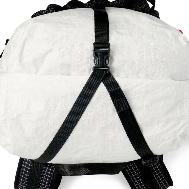 対向するバックルでアイテムを中央に固定でき、外側のポケットには様々なストラップを取り付けられるデイジーチェーンが付いており、外部収納の柔軟性を高めています。