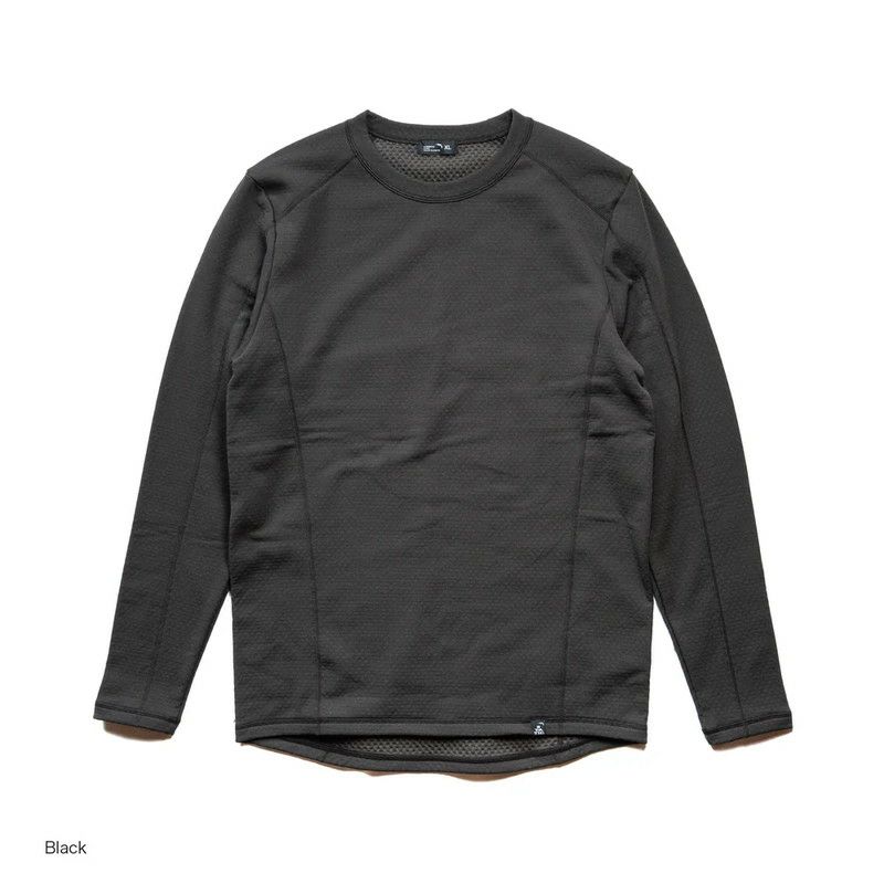 凹凸状にした肌面はウールとポリエステルの起毛になっており、腕を通した際にすぐに暖かさを感じやすく、凹凸のグリッドが肌に面接触しないため汗をかいても冷え感も軽減します。