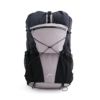 フロントのジッパーポケットや両サイドのメッシュポケットには小物やボトルを収納でき、上部のバンジーコードを使えばトレッキングポールや傘などもスマートに持ち運べます。