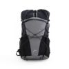 フロントのジッパーポケットや両サイドのメッシュポケットには小物やボトルを収納でき、上部のバンジーコードを使えばトレッキングポールや傘などもスマートに持ち運べます。