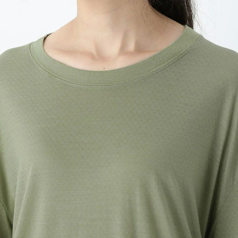 メッシュ構造にして通気性を高めているため、暑いシーズンでもメリノウールを心地よく着れます。