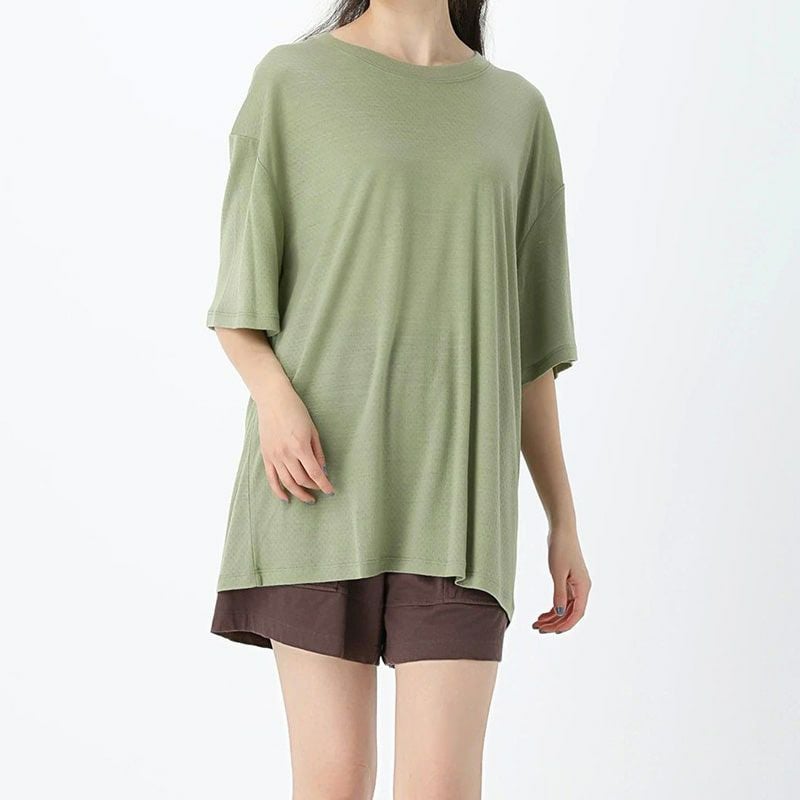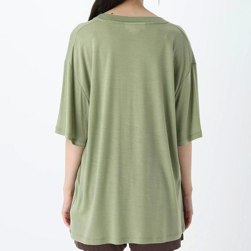 アイレット生地ですがゆったりとしたフォルムなので、シティやハイキングでも、透け感は少ないです