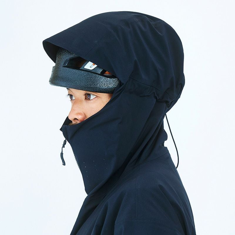 前方からの冷気の遮断も考慮したヘルメット対応フード、効果的な衣服内通気を可能としたピットジップ、高めに配置したポケット、ゴーグル・グローブなどの収納を可能としたインナーポケット、取り外し可能なスノーガードを搭載するなど、細部にもこだわった設計。