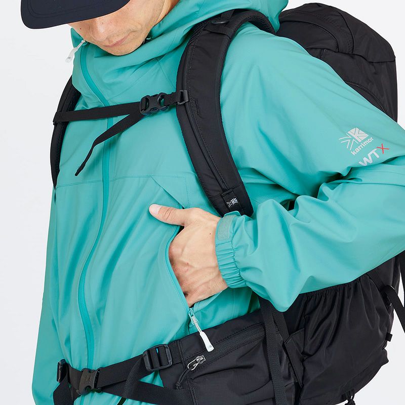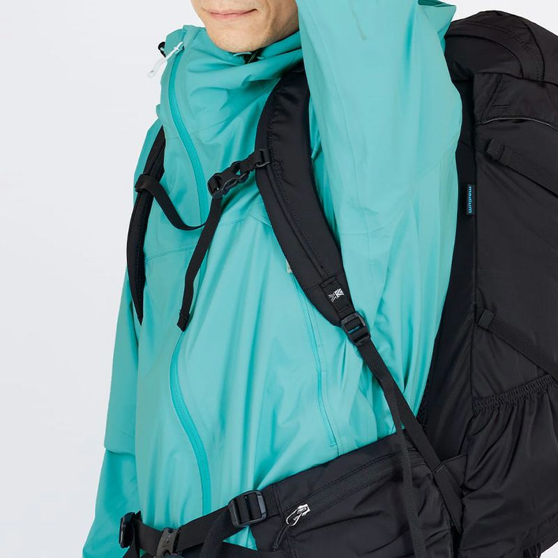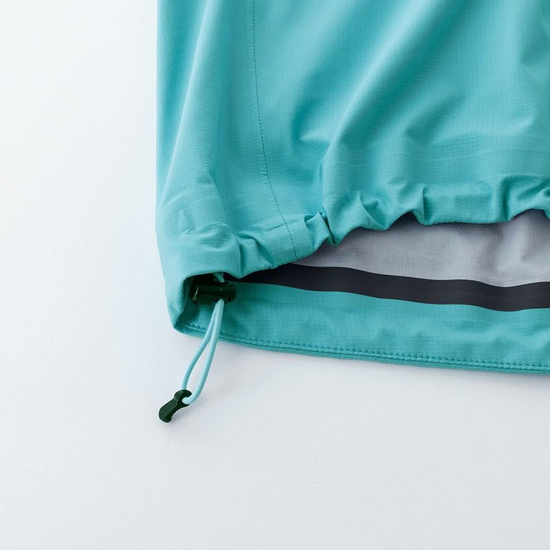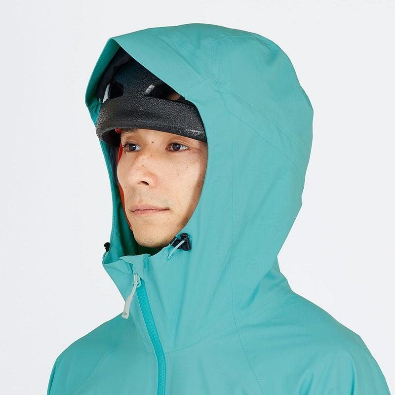 リュックサックとの相性を考慮したポケット位置、ヘルメット対応フード設計、腕上げを考慮したパターンワーク、両腕後方にはリフレクタープリントを搭載。
