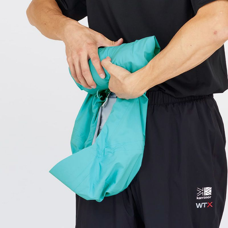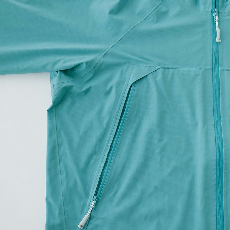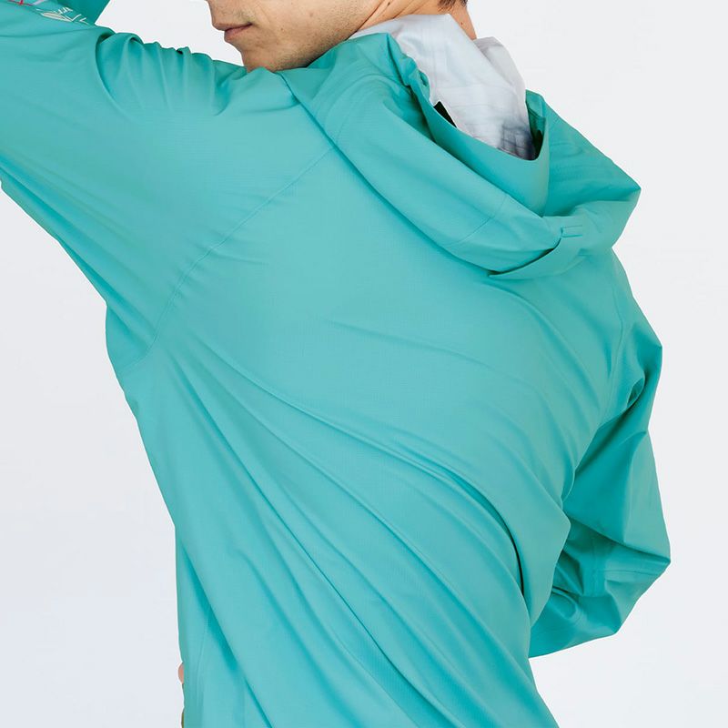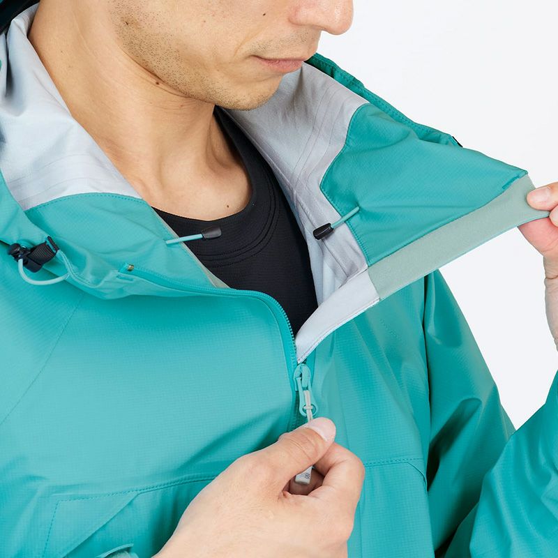 ポケット地には抗菌加工素材を採用、また携行性を考慮し身頃をフード内に収納可能な仕様、など細部の仕様にまでこだわったデザインに。