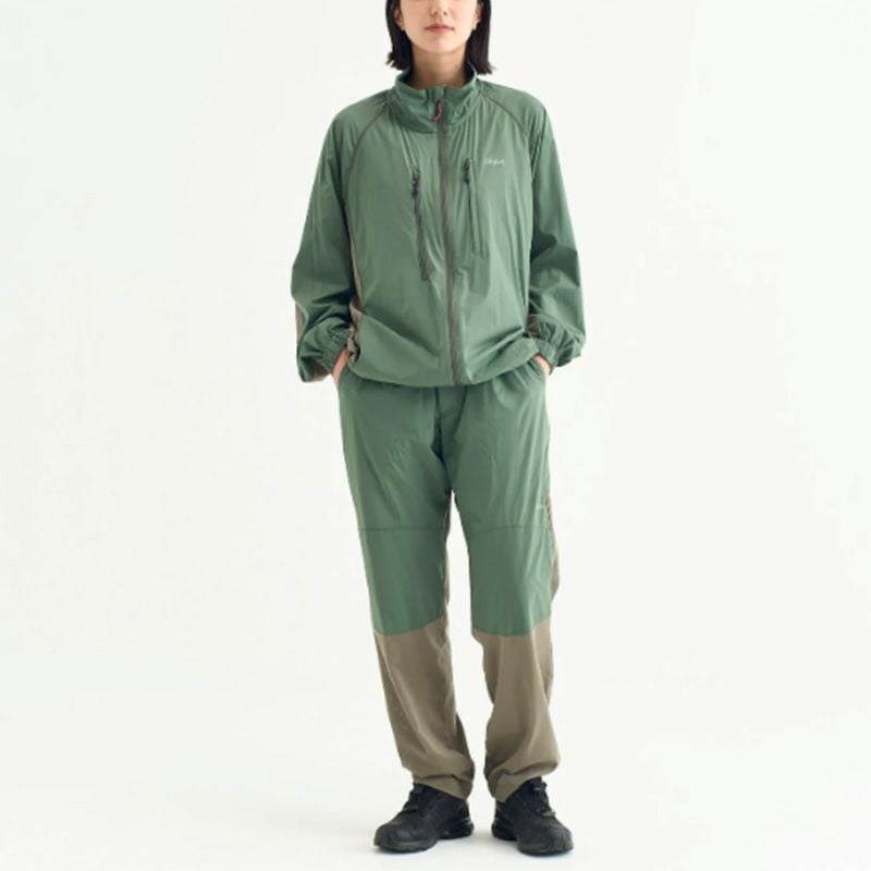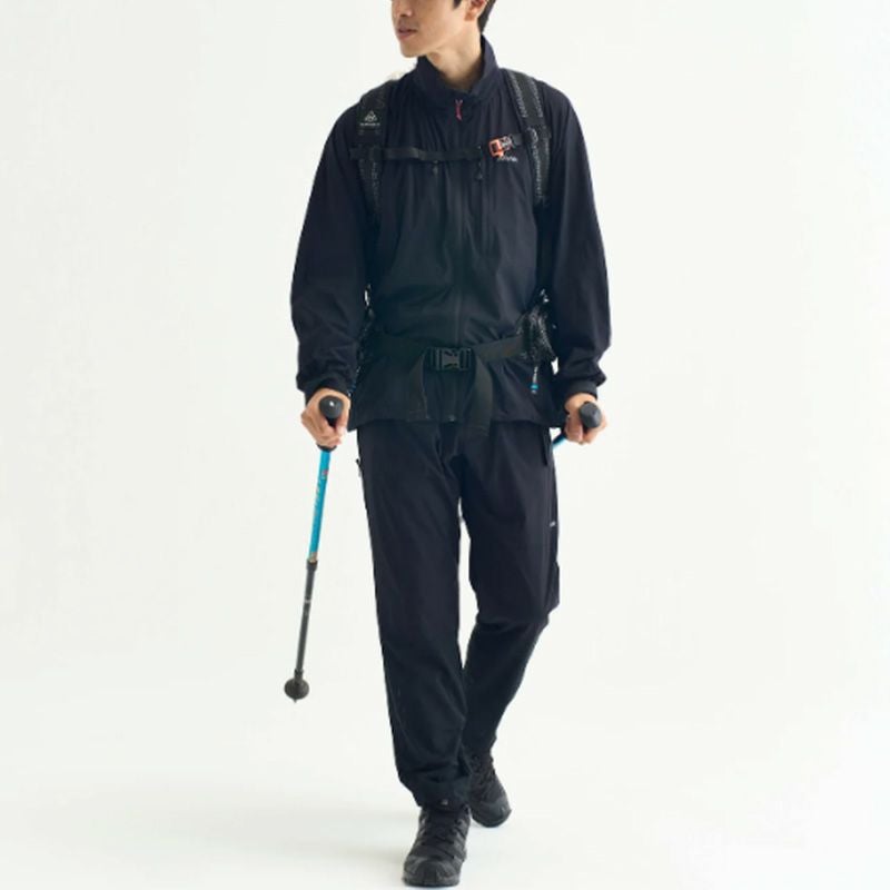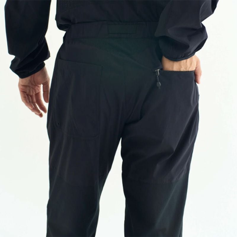 雨風を凌ぐライトシェル素材と蒸れを逃がすメッシュ素材を使用し、アウトドアシーンを意識したロングパンツ。