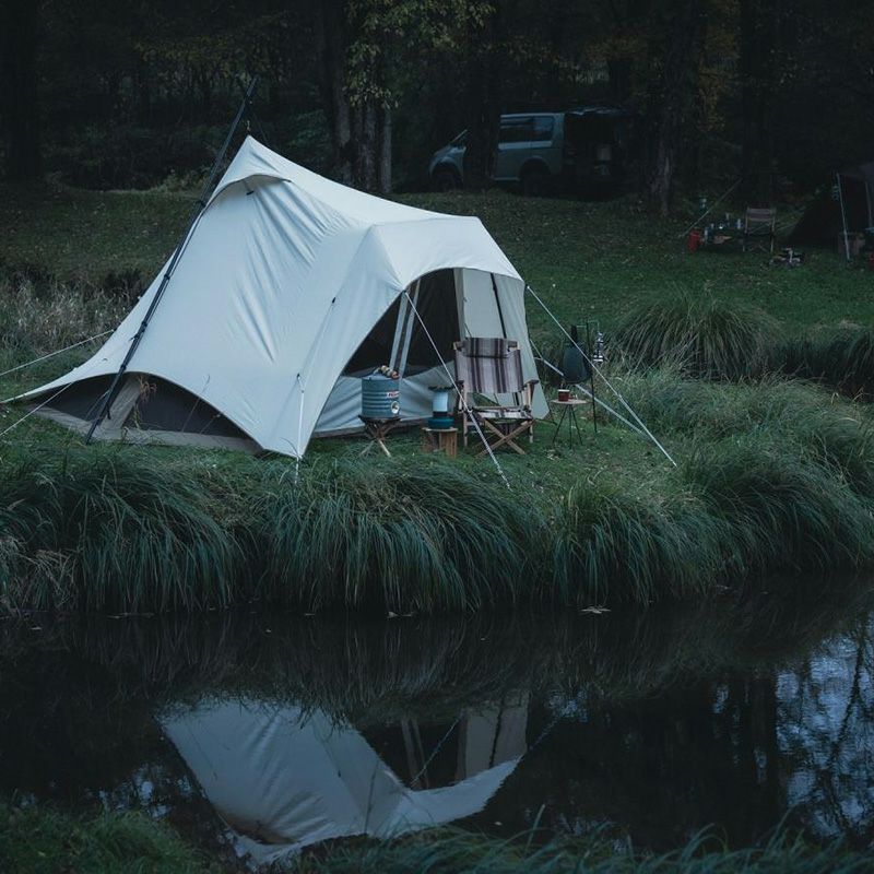 フィールドで、ひときわ目を引く独創的なシルエットのテント。