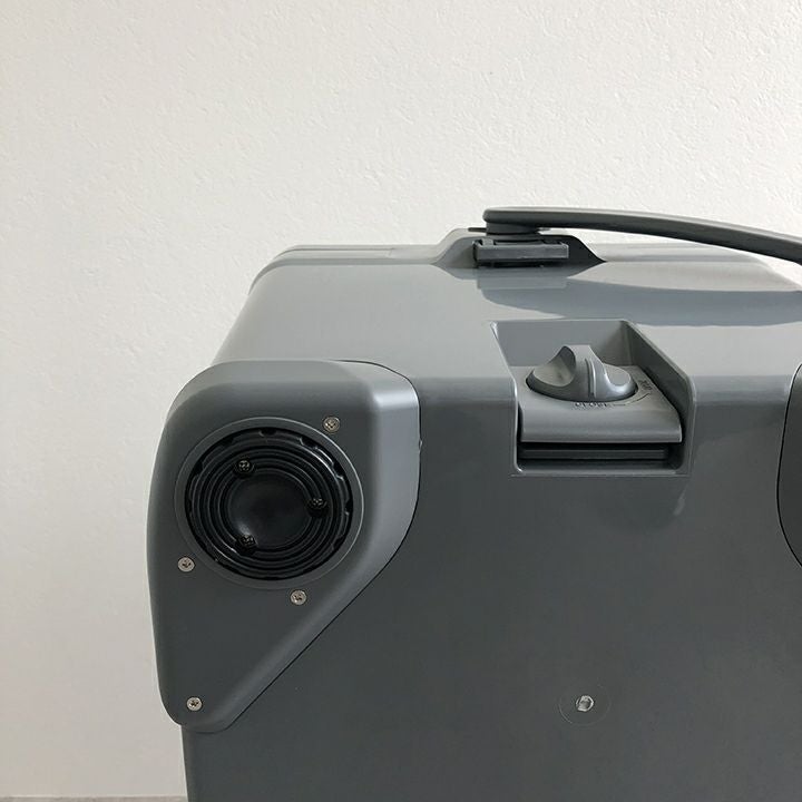 左右のレバーを同時にあげると蓋が着脱。狭い場所でも簡単に中身の出し入れが可能。