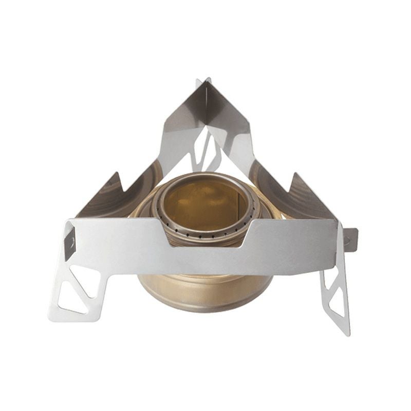 肉抜き加工を施して軽量化を図った3枚のプレートを組み合わせて使う、トランギアのアルコールバーナー専用のゴトクです。