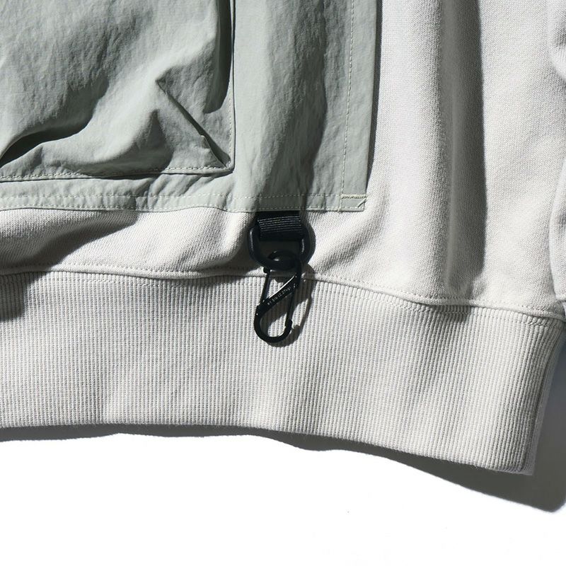 不快な臭いの元となる菌の繁殖を防ぐ抗菌防臭機能のあるヘビー裏毛で抗菌防臭にも強いのが特徴。カラビナ付属。