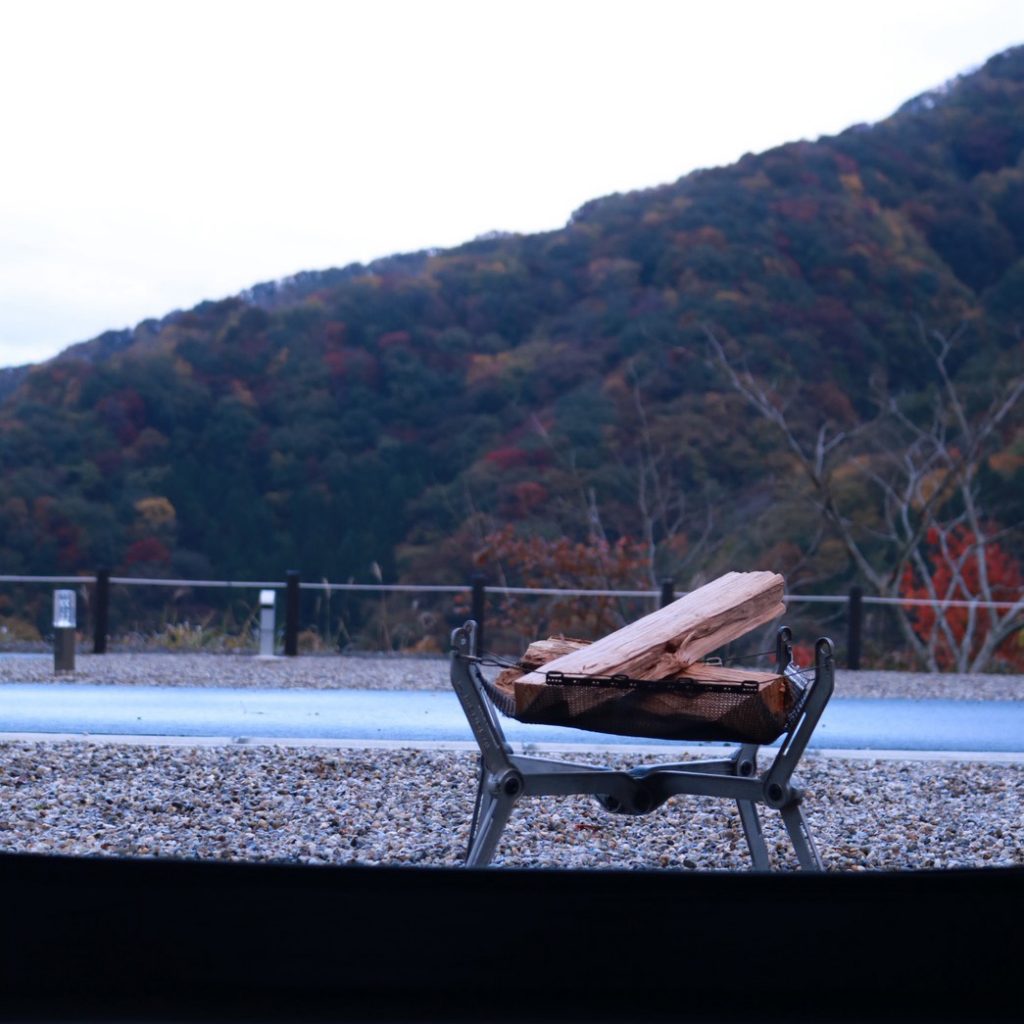 夜には monoral の「ワイヤフレームソリッド M」を使って焚き火を楽しみました。