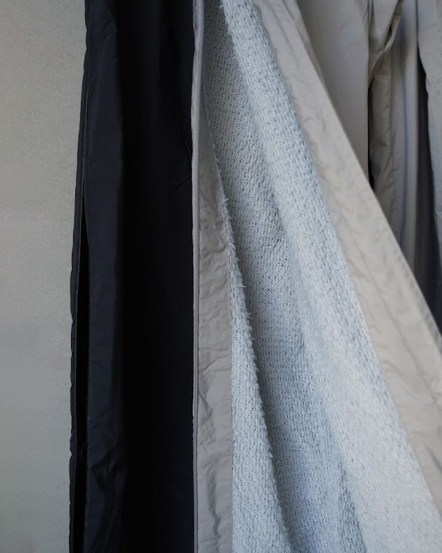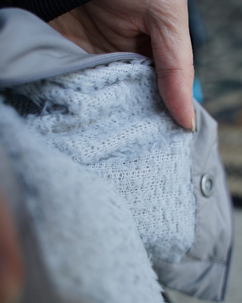 スナップボタン付きで、ジッパー開放時の通気にも対応し、ドローコードで裾を絞れば冷気の侵入も防げます。