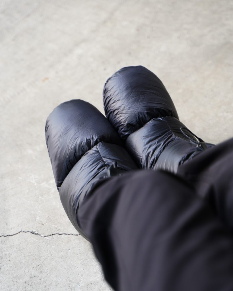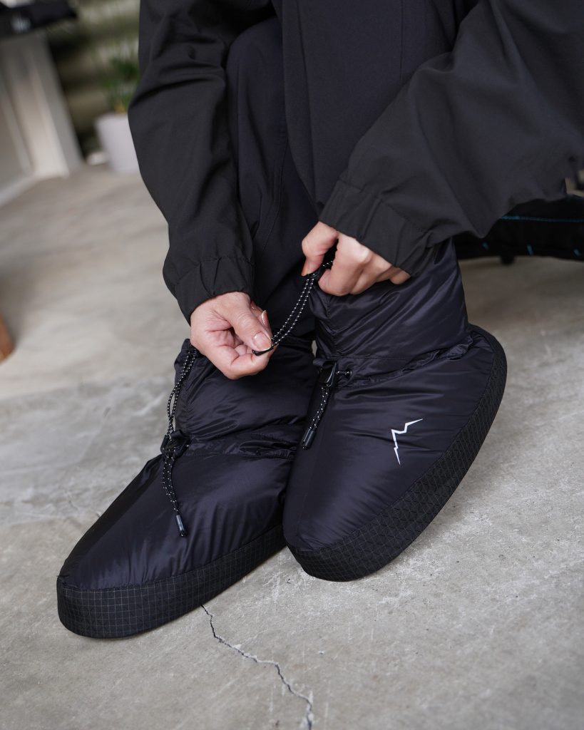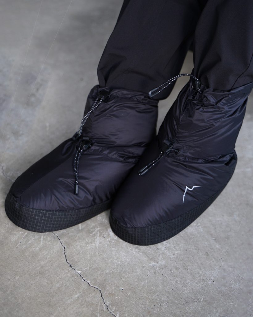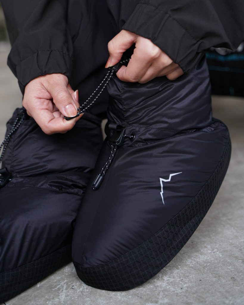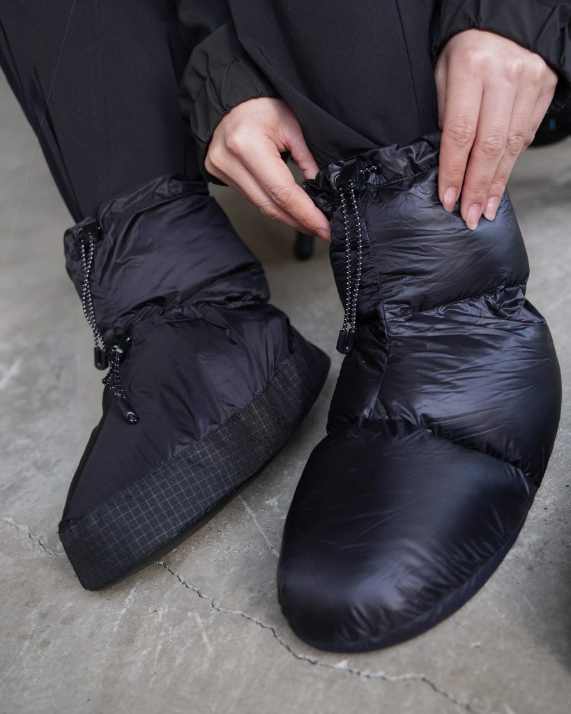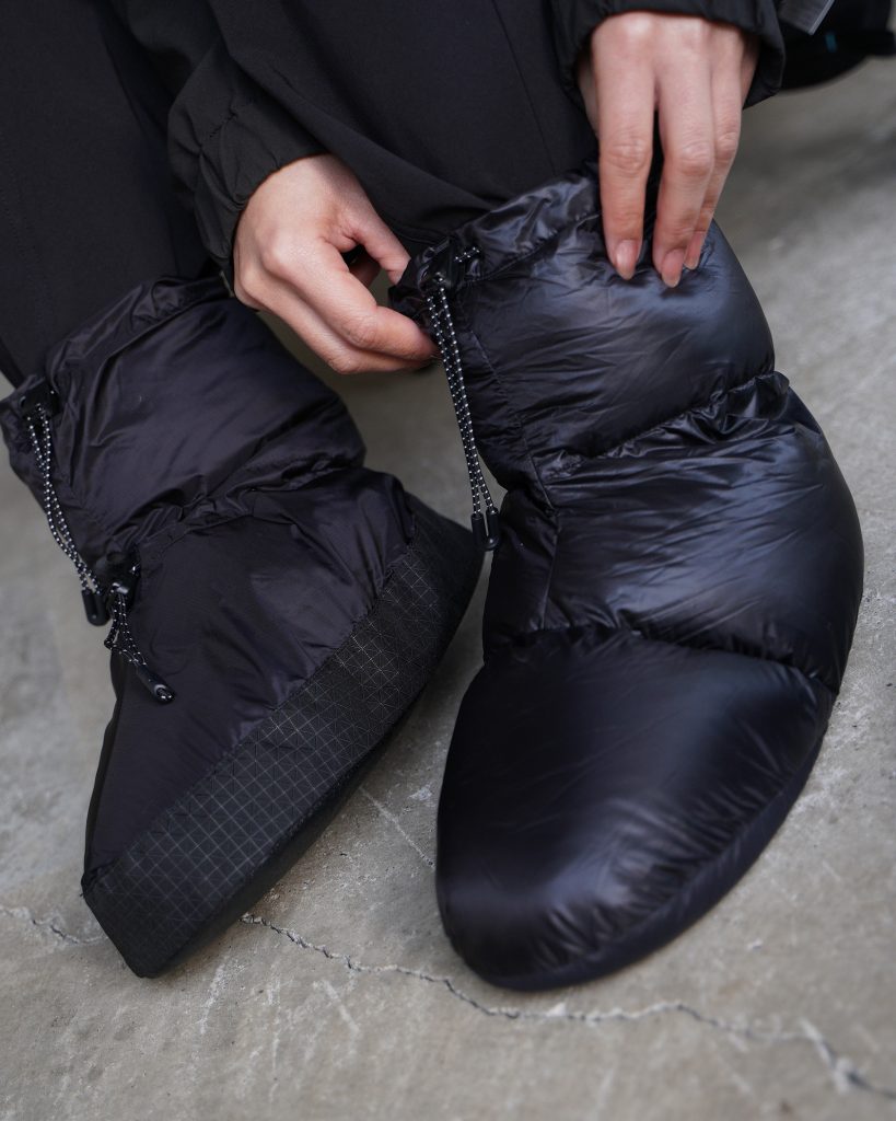 テント泊キャンプの時間を、より快適にしてくれる、軽量な保温用ダウンブーティーです。