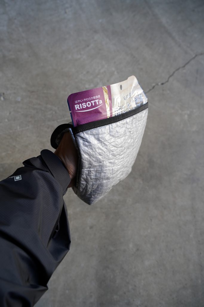 アルファ米や乾燥フードをお湯で戻す際に時間短縮に最適なバッグ。