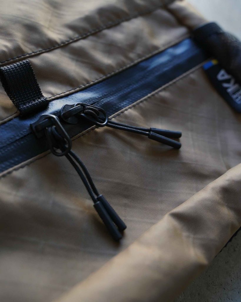 本体素材には、ブラックにX-Pac VX21、その他カラーにはEcoPak EPX200を採用。いずれも軽量性・耐久性・防水性を高次元で兼ね備え、雨や汚れにも強く、ハードな使用環境にも対応します。縫製部にはWJ、パーツには信頼性の高いYKKを使用し、ウクライナの工房で一点ずつ丁寧に製作されています。