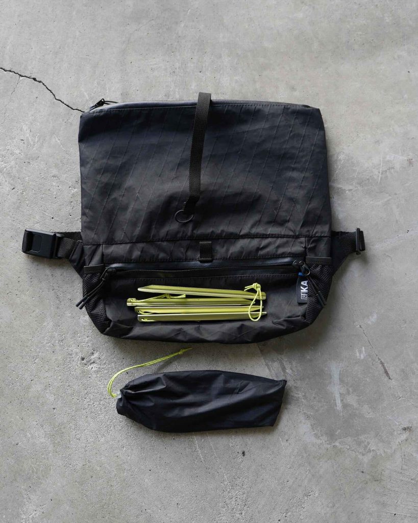 これひとつで、必要最低限のギアをまとめて軽快に持ち出せる収納力を備えています。街歩きからハイキング、キャンプ、旅先のサブバッグまで、場所やシーンを選ばず自然に持ち出せる、持っていることを忘れるほど軽快なミニマルギアです。