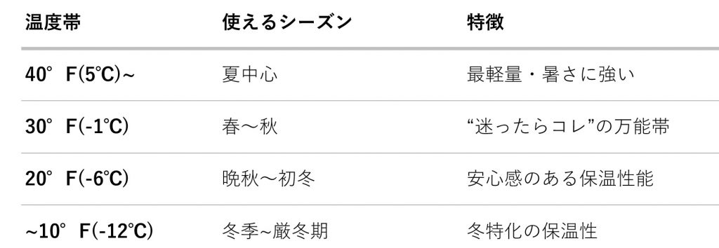 逆に『軽さを徹底したい』『夏のロングだけ使う』という方は40°Fがとても快適です!