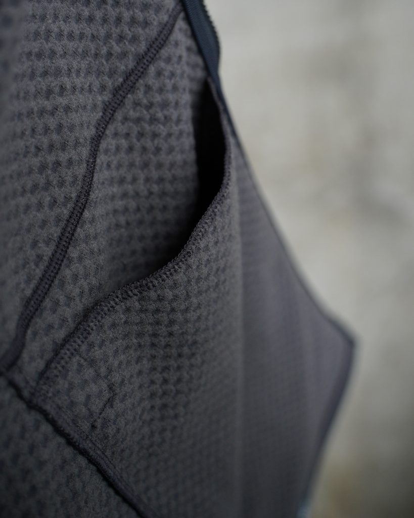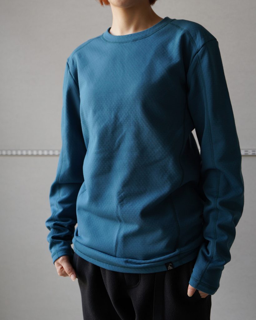 軽量で温かく、蒸れにくいグリッド構造の保温着です。