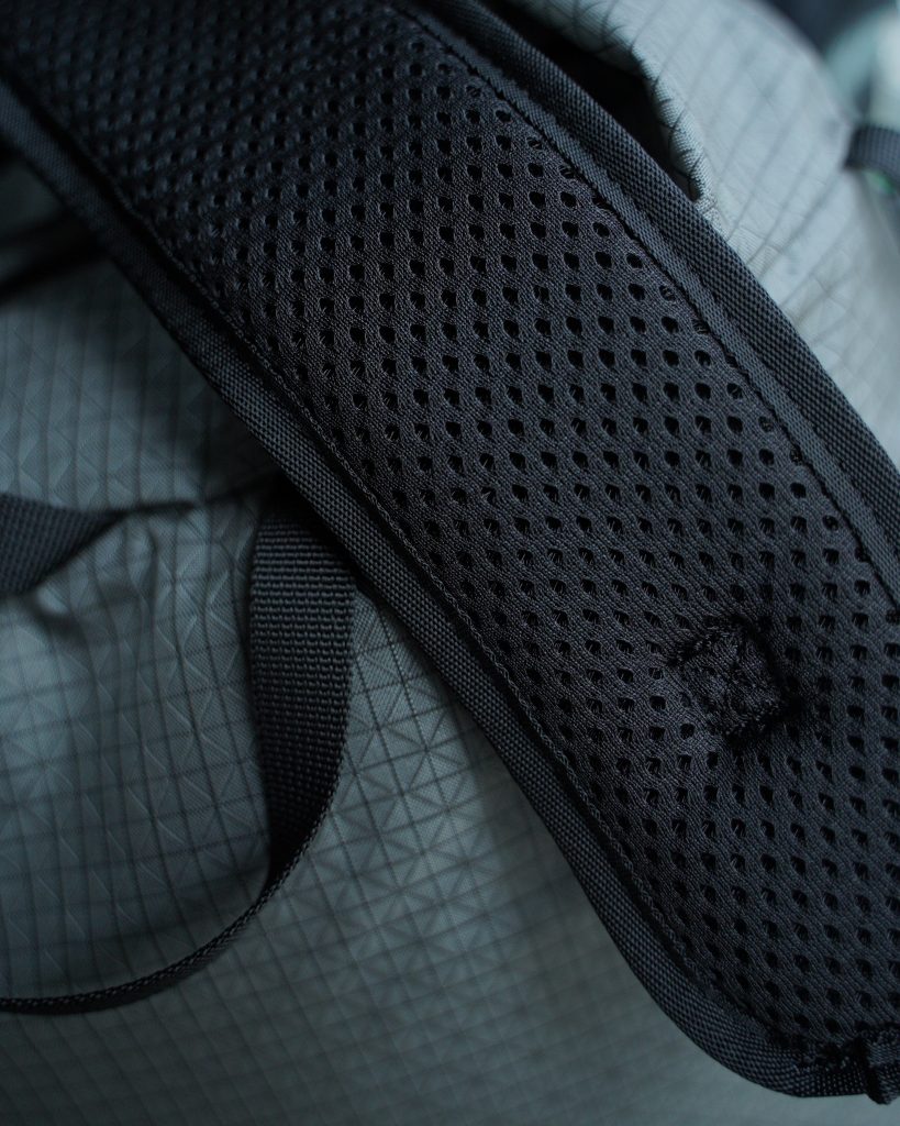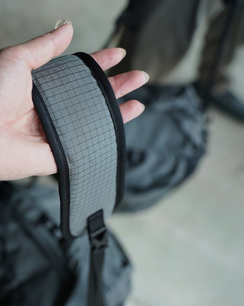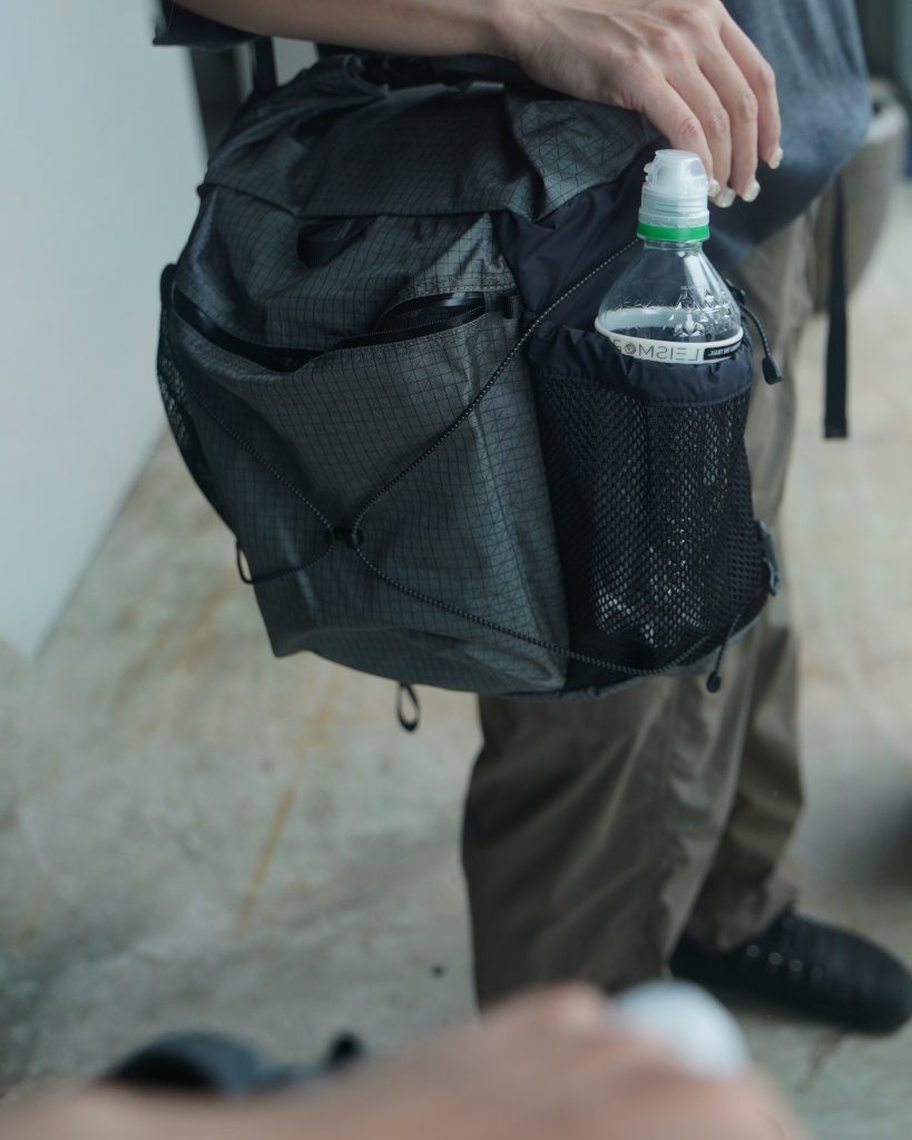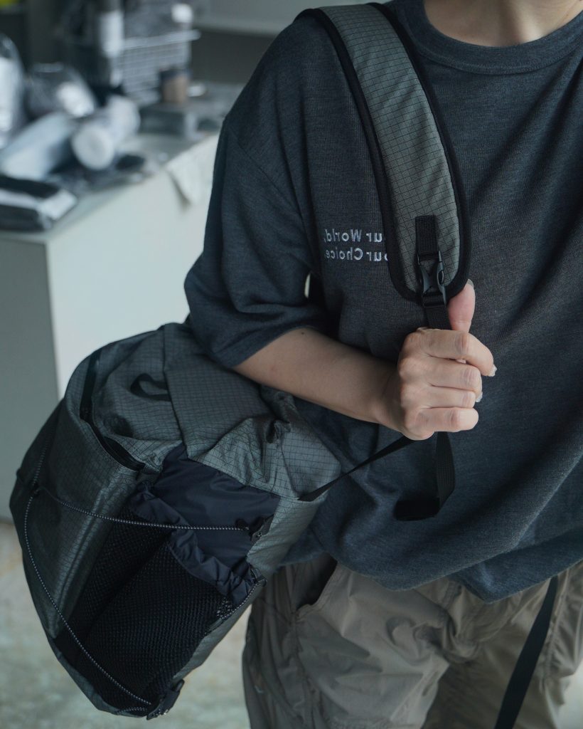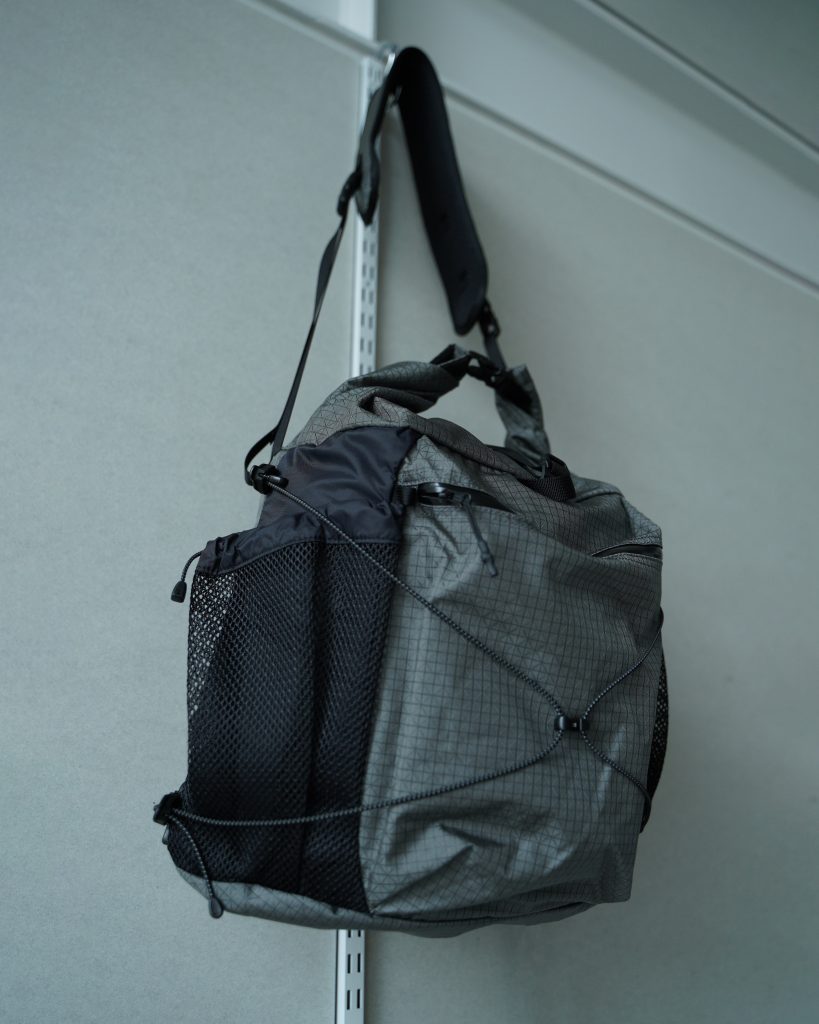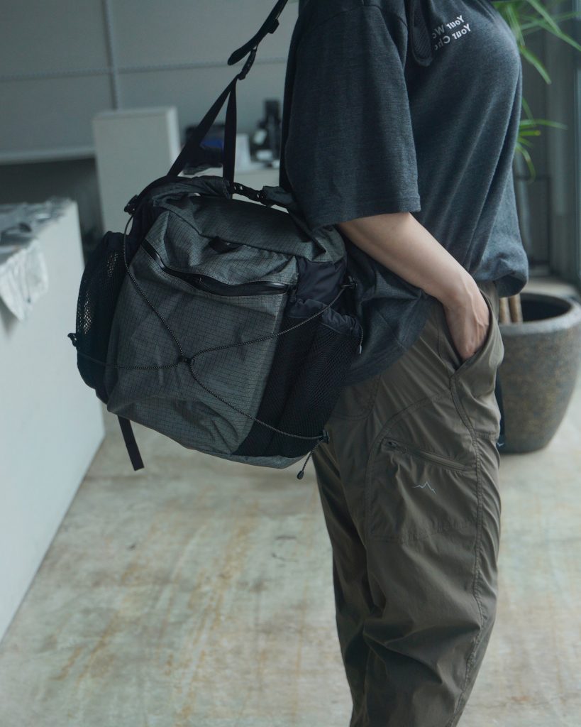 ショルダーストラップは取り外し式で、肩掛けだけでなく手持ちでも使える2WAY仕様、メイン素材には高強度なグリッドファブリックを採用し、サイドには軽量で柔軟性のある70Dリップストップナイロンを組み合わせで、CAYLらしいミニマルデザインに仕上げています。