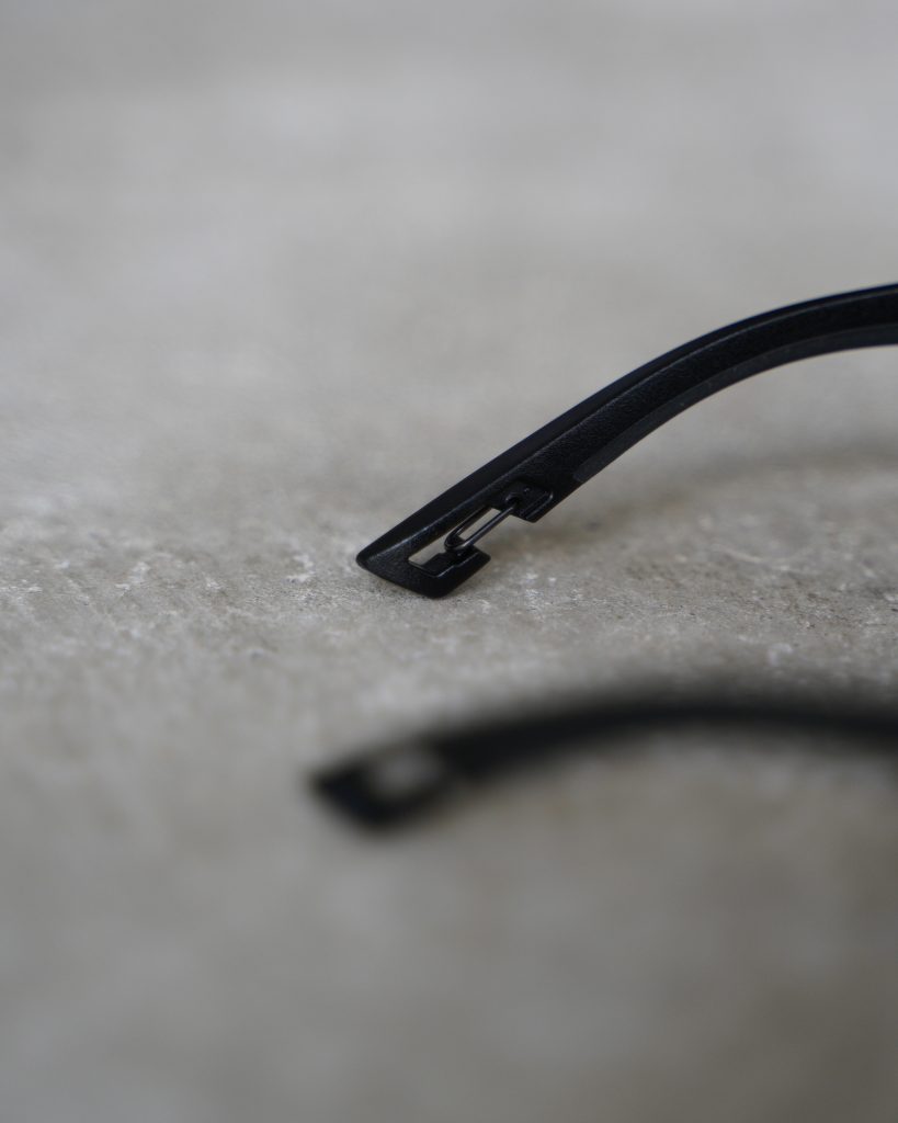 フレームには、45%の植物由来素材を採用し、環境に配慮しつつ、軽量で柔軟性のあるデザインを実現。さらにカラビナエンド仕様、グラスコード付属と機能を盛り込んでいます。