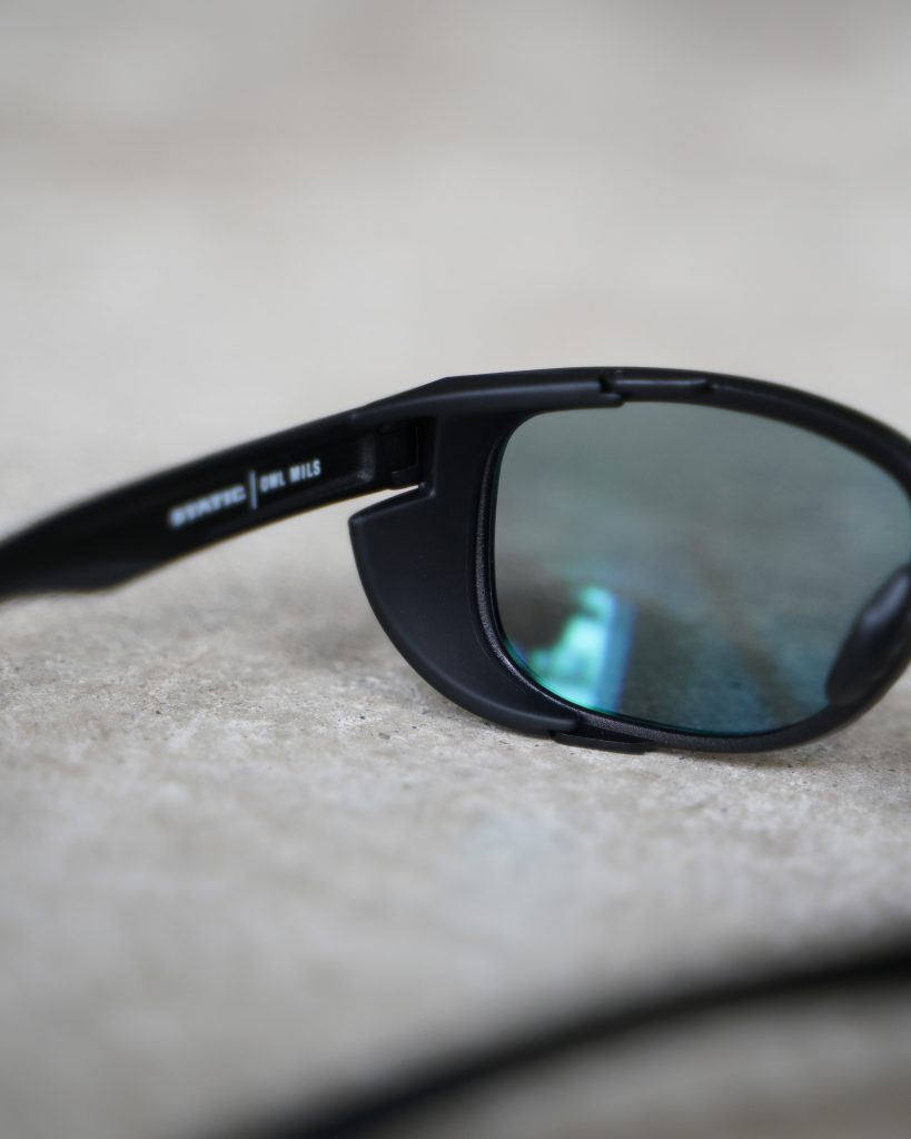 偏光+ハイコントラストに加え、特殊レンズやサイドシールドで視界をクリアに確保。